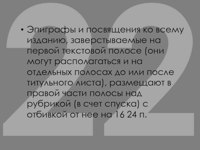 после титульного листа), размещают в правой части полосы над рубрикой (в счет спуска) с отбивкой от нее на 16 24 п.