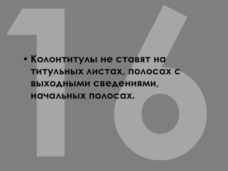 Колонцифры не должны быть на титульных листах, шмуцтитулах, полосах с