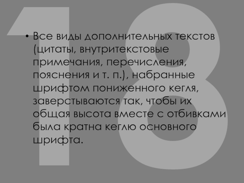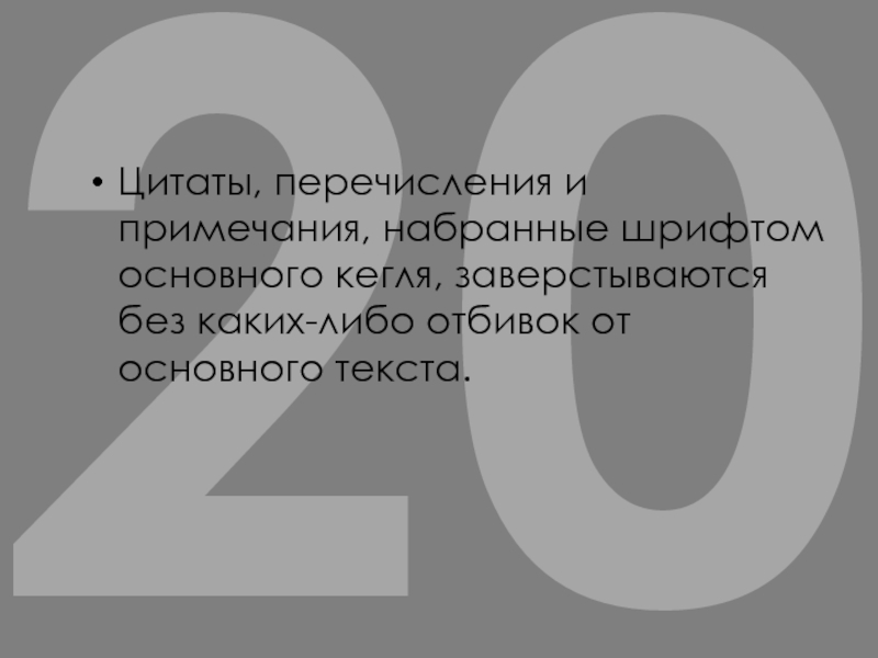 Цитаты, перечисления и примечания, набранные шрифтом основного кегля, заверстываются без