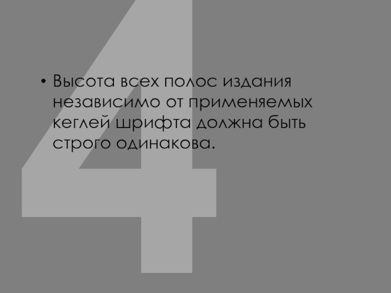Высота всех полос издания независимо от применяемых кеглей шрифта должна