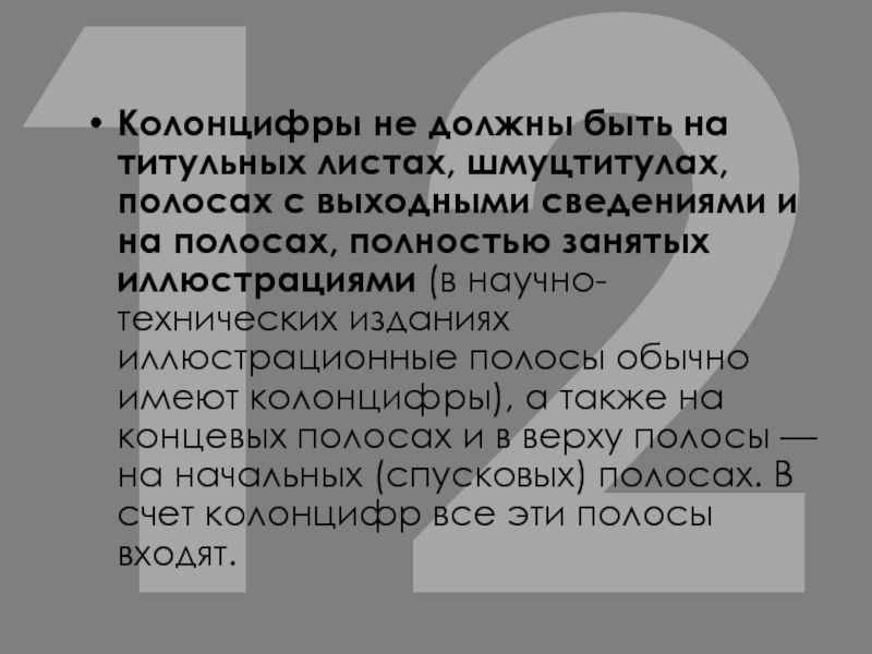 иллюстрационные полосы обычно имеют колонцифры), а также на концевых полосах и в верху полосы — на начальных (спусковых) полосах. В счет колонцифр все эти полосы входят.