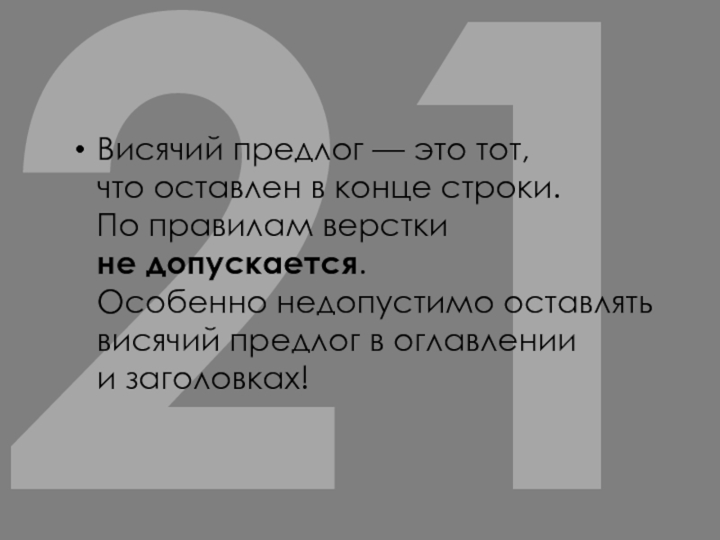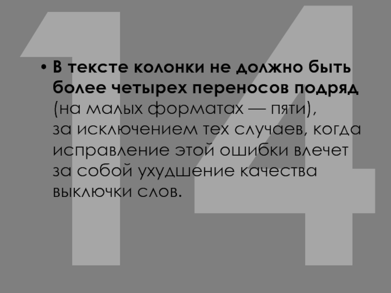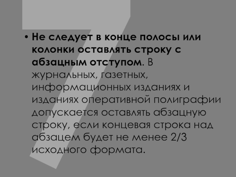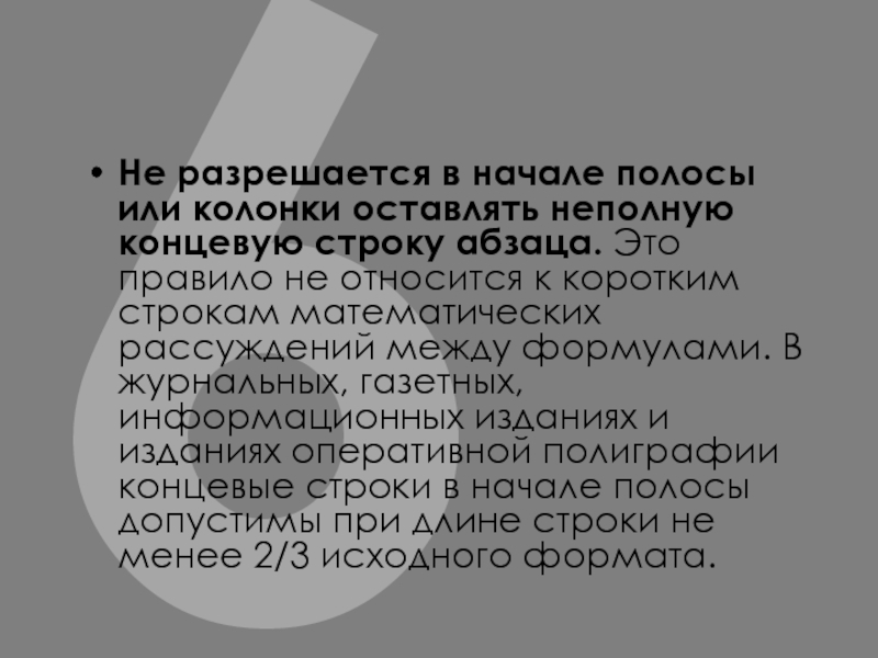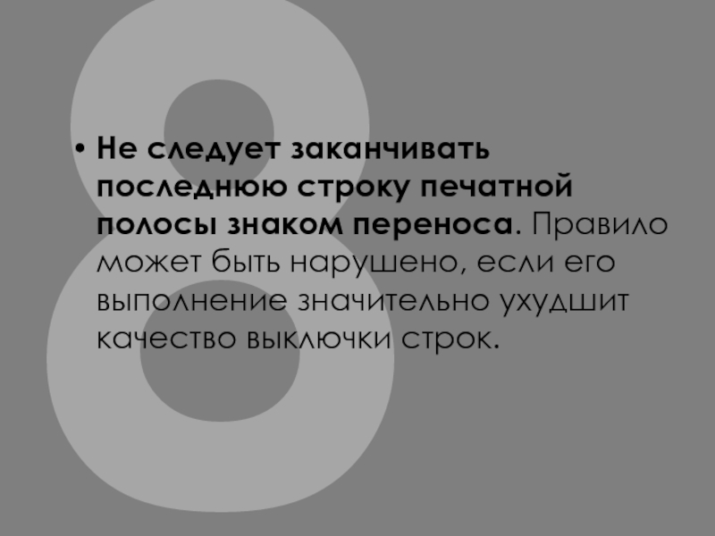 Не следует заканчивать последнюю строку печатной полосы знаком переноса. Правило