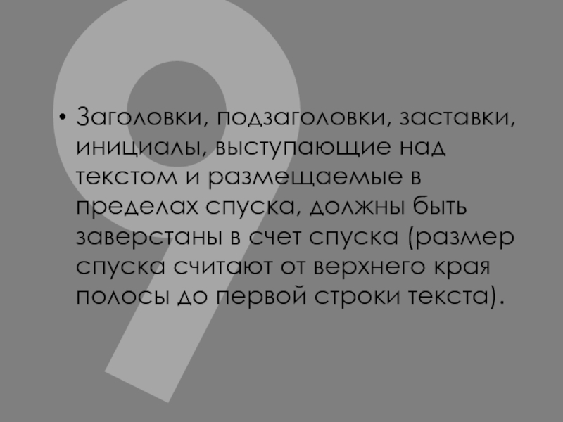 Заголовки, подзаголовки, заставки, инициалы, выступающие над текстом и размещаемые в