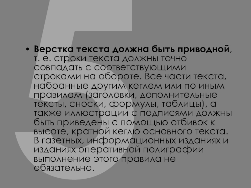 Верстка текста должна быть приводной, т. е. строки текста должны