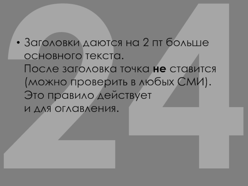 2—4 п. больше, чем сверху, дополнительные тексты внизу или вверху