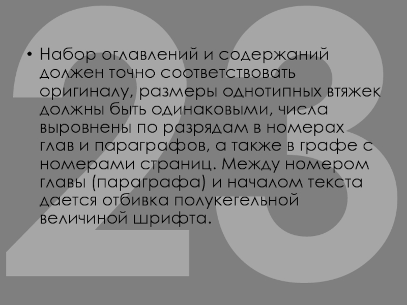 Набор оглавлений и содержаний должен точно соответствовать оригиналу, размеры однотипных