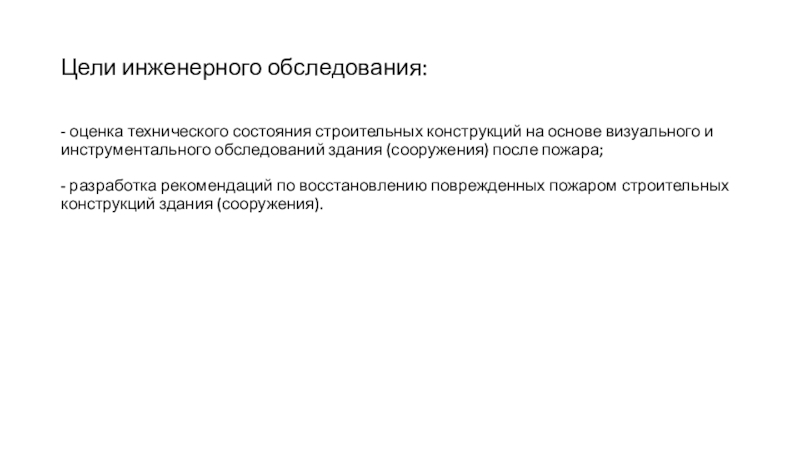 визуального и инструментального обследований здания (сооружения) после пожара;
