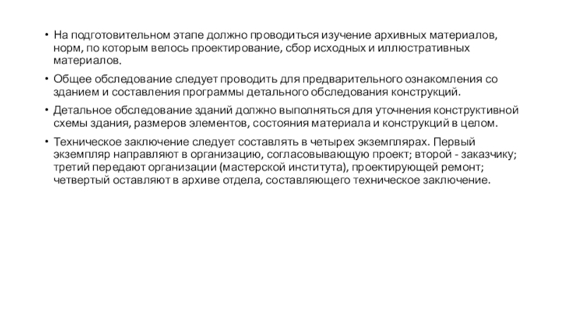 Слайд 4На подготовительном этапе должно проводиться изучение архивных материалов, норм, по