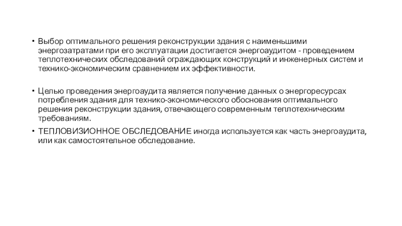 Слайд 8Выбор оптимального решения реконструкции здания с наименьшими энергозатратами при его