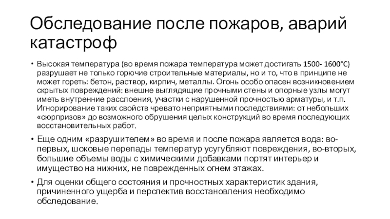 -Инженерное обследование строительных конструкций, поврежденных пожаром, должно проводиться