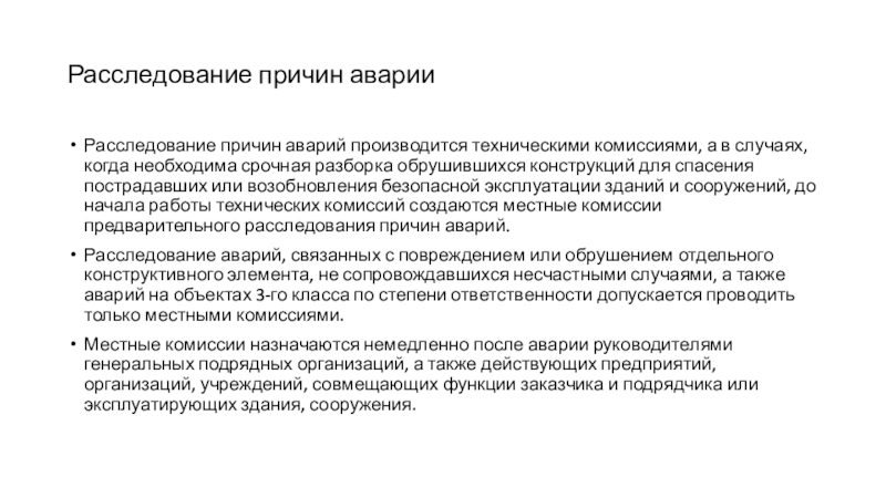 или возобновления безопасной эксплуатации зданий и сооружений, до начала работы технических комиссий создаются местные комиссии предварительного расследования причин аварий.