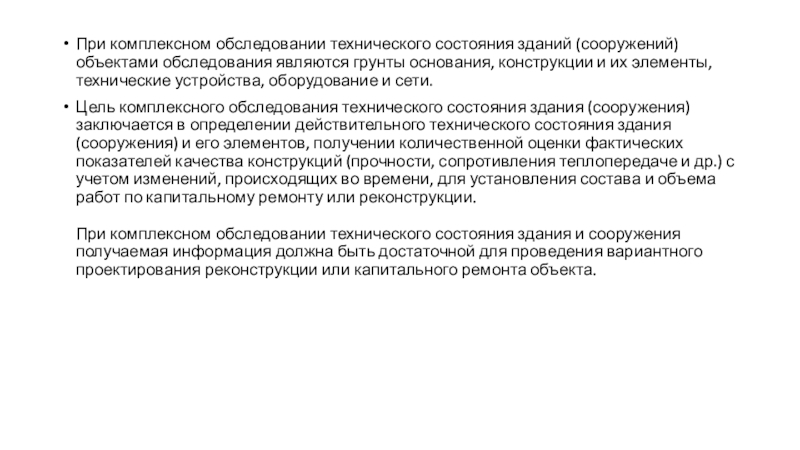 Слайд 6При комплексном обследовании технического состояния зданий (сооружений) объектами обследования являются