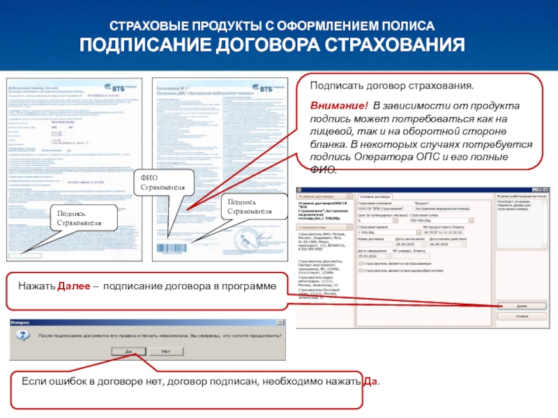 Нажать Далее - сохранение контракта, нажать Далее – присвоение номера контракту, нажать Далее - печать договора страхования. В зависимости от продукта печать производится либо на бланке контрагента, либо на чистом листе А4