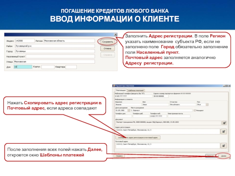 Если Адрес регистрации совпадает с Почтовым адресом необходимо нажать Скопировать адрес.