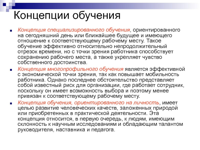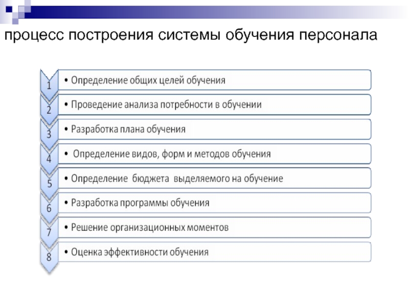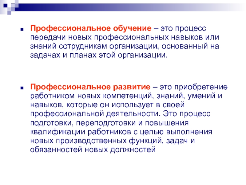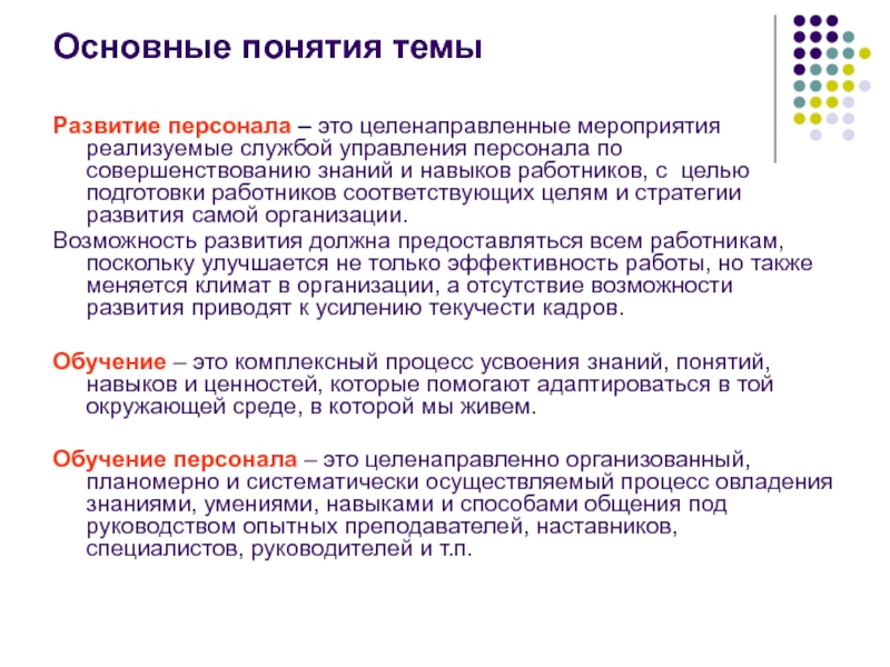 Обучение персонала – это целенаправленно организованный, планомерно и систематически осуществляемый процесс овладения знаниями, умениями, навыками и способами общения под руководством опытных преподавателей, наставников, специалистов, руководителей и т.п.
