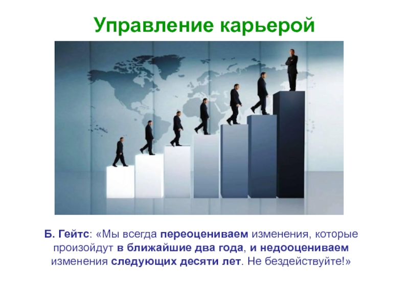 Слайд 32Б. Гейтс: «Мы всегда переоцениваем изменения, которые произойдут в ближайшие