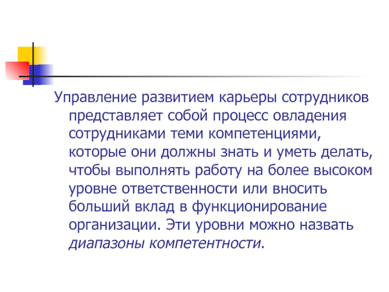 Слайд 39Управление развитием карьеры сотрудников представляет собой процесс овладения сотрудниками теми