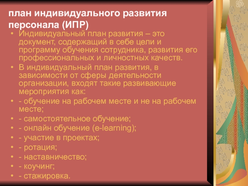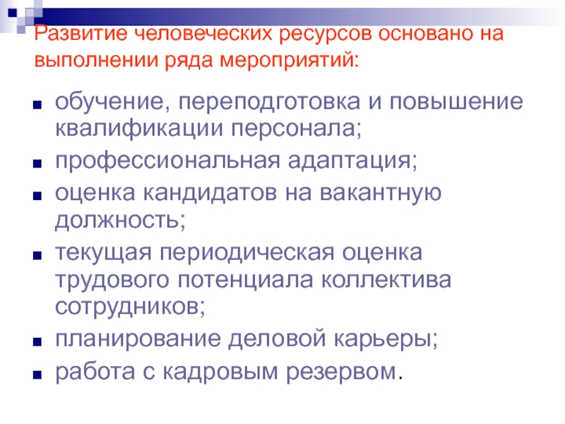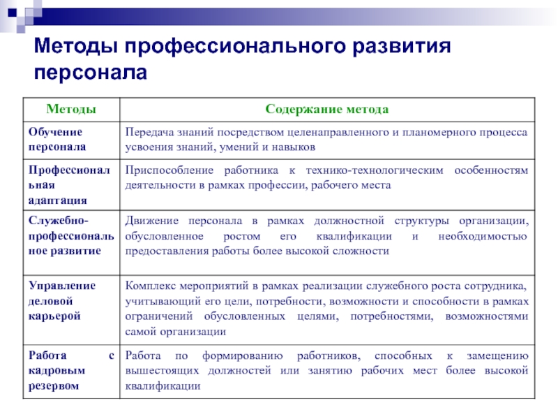 Развитие персонала – это целенаправленные мероприятия реализуемые службой
