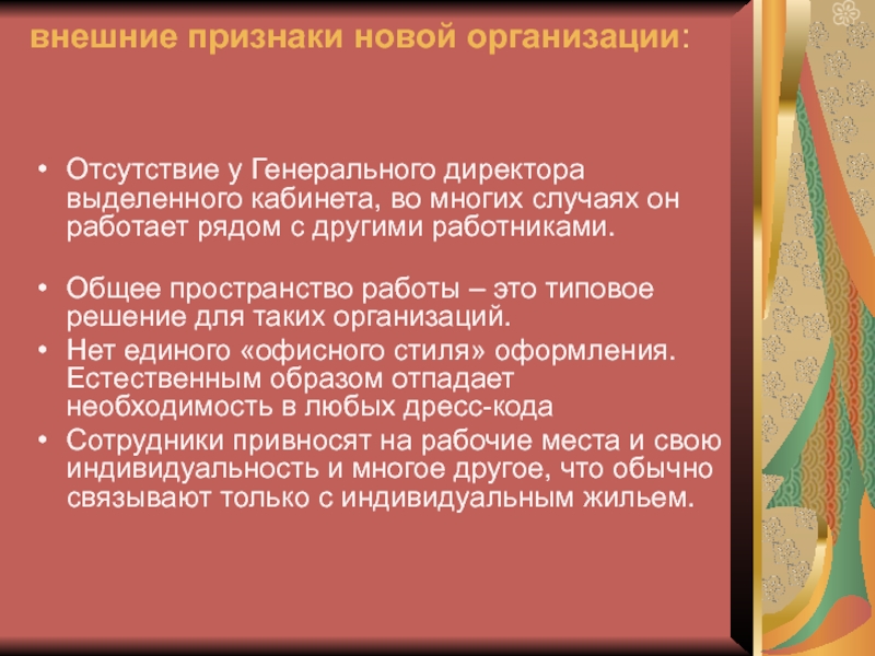 Нет единого «офисного стиля» оформления. Естественным образом отпадает необходимость в любых дресс-кода