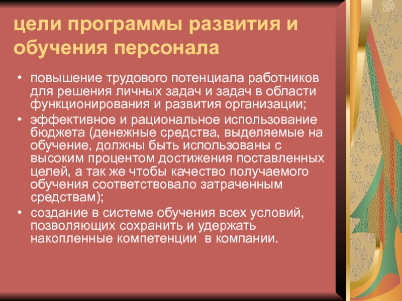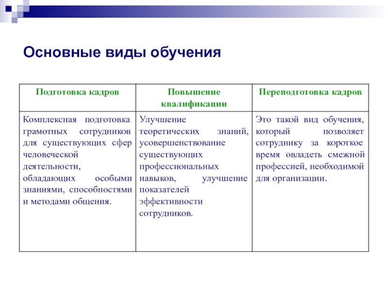 управления персонала по совершенствованию знаний и навыков работников, с целью