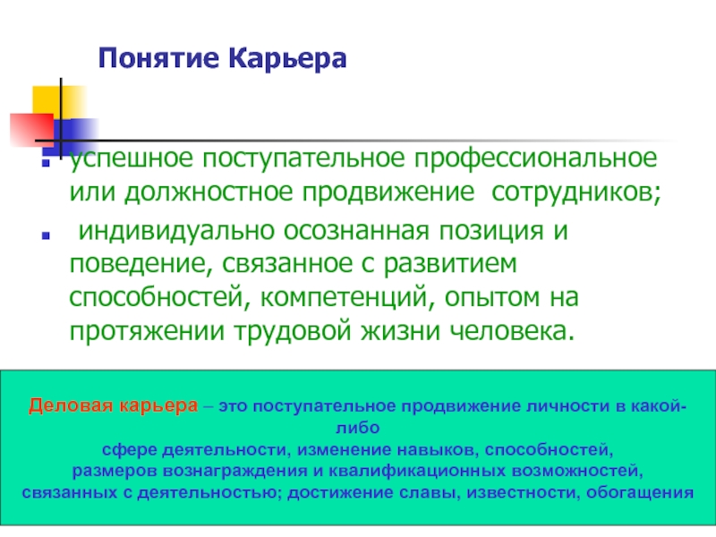 Деловая карьера – это поступательное продвижение личности в какой-либо