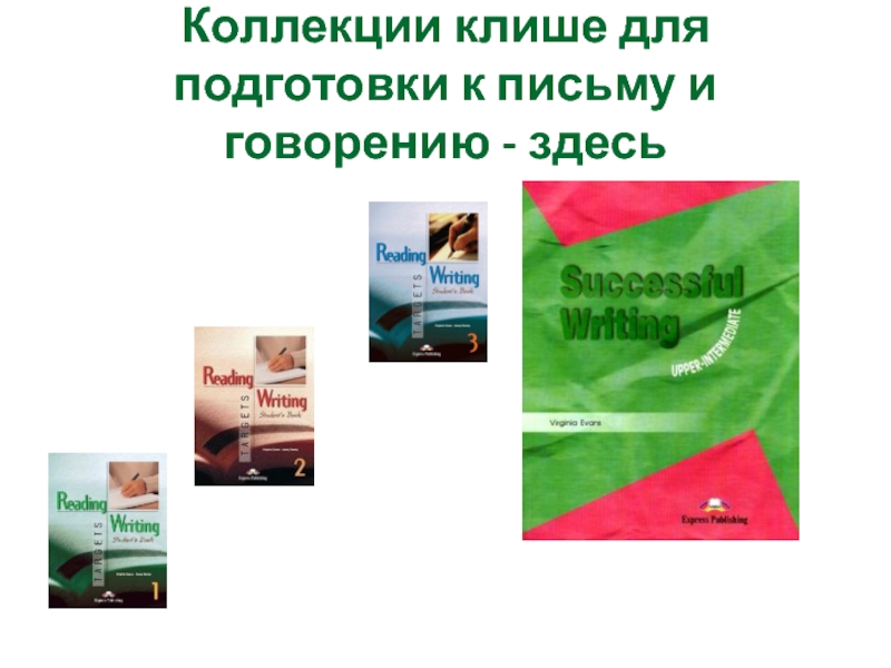 Слайд 9Коллекции клише для подготовки к письму и говорению - здесь