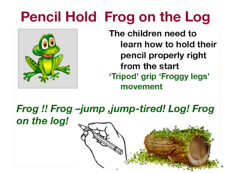 Pencil Hold Frog on the LogThe children need to learn how to hold their pencil properly right