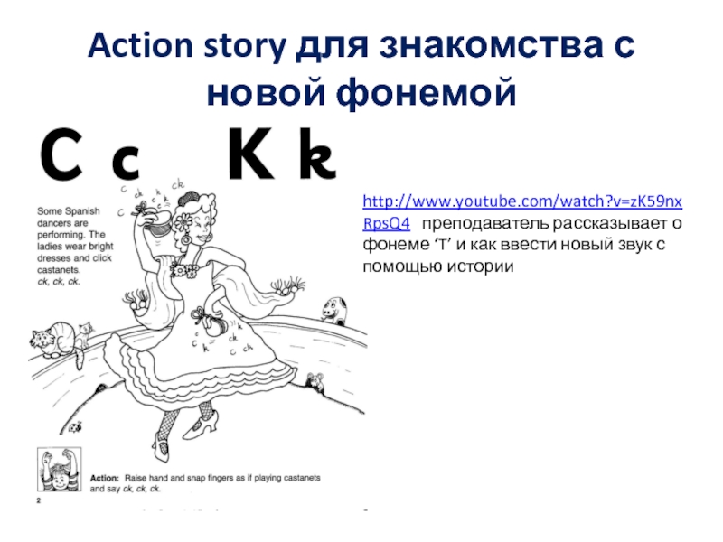 Action story для знакомства с новой фонемой http://www.youtube.com/watch?v=zK59nxRpsQ4  преподаватель рассказывает о фонеме ‘T’ и как
