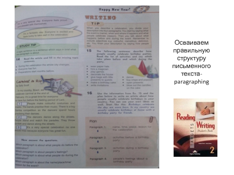 Слайд 13Осваиваем правильную структуру письменного текста- paragraphing