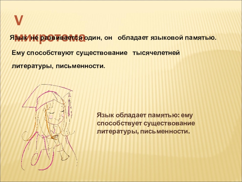 Язык обладает памятью: ему способствует существование литературы, письменности.