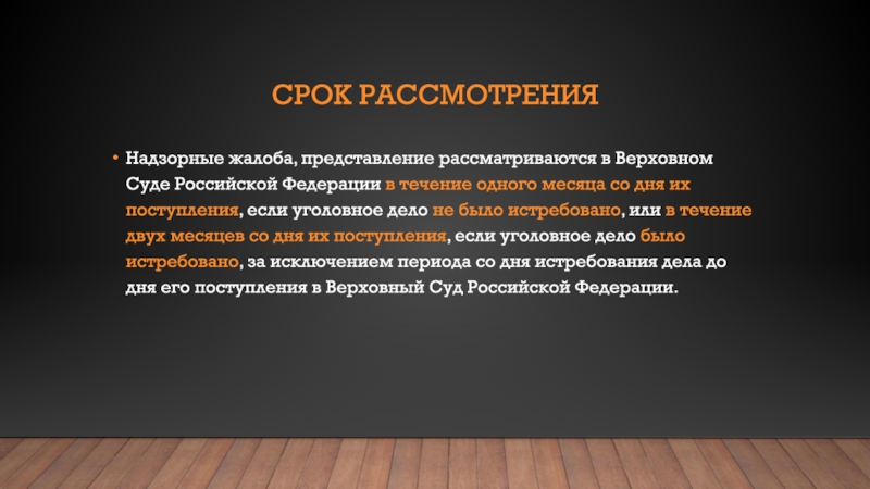 дело не было истребовано, или в течение двух месяцев со дня их поступления, если уголовное дело было истребовано, за исключением периода со дня истребования дела до дня его поступления в Верховный Суд Российской Федерации.