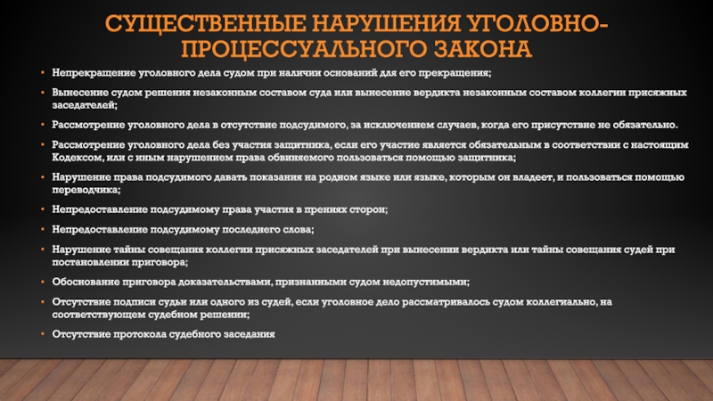 Слайд 15Существенные нарушения уголовно-процессуального закона