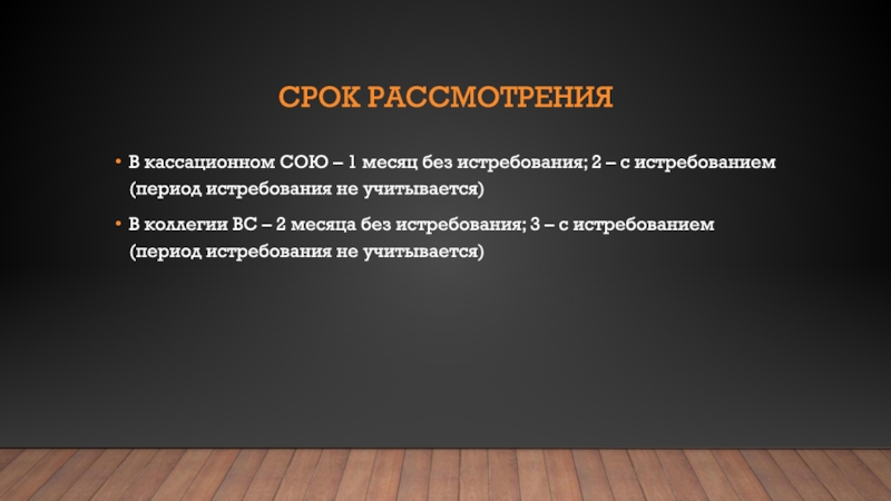 В кассационном СОЮ – 1 месяц без истребования; 2