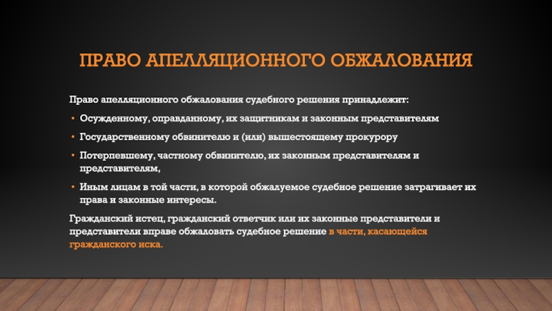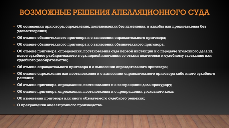 Слайд 13Основаниями отмены или изменения судебного решения в апелляционном порядке являются