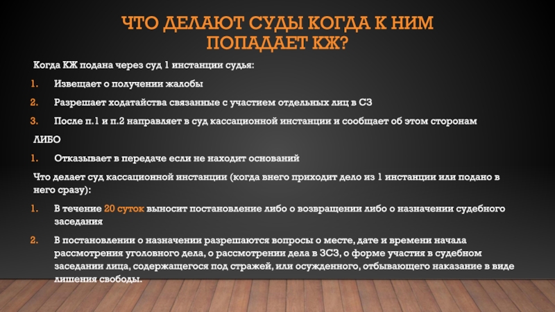 Слайд 31Что делают суды когда к ним попадает КЖ?