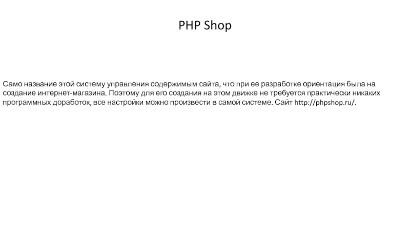 PHP ShopСамо название этой систему управления содержимым сайта, что при ее разработке ориентация была на создание интернет-магазина.