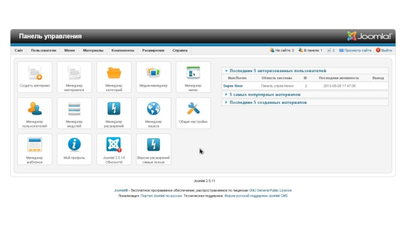 JoomlaJoomla также одна из самых популярных Open Source CMS. В основном используется для созданий простых сайтов и