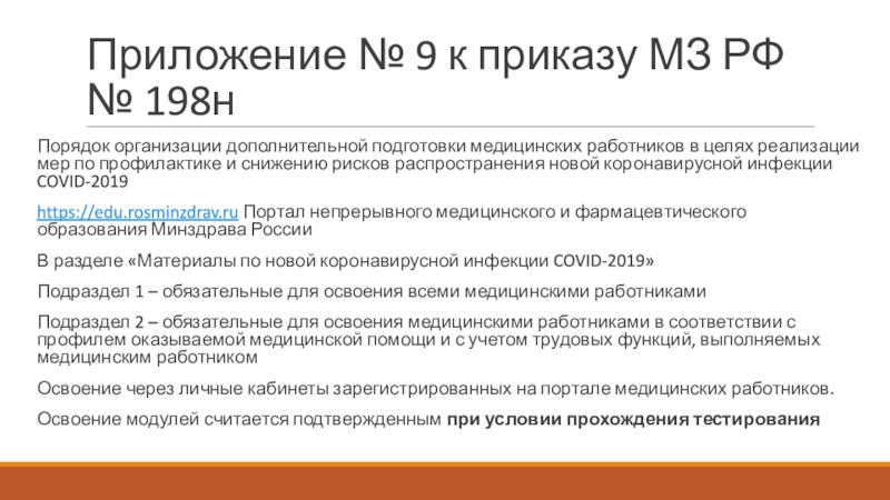 Слайд 22Приложение № 9 к приказу МЗ РФ № 198н