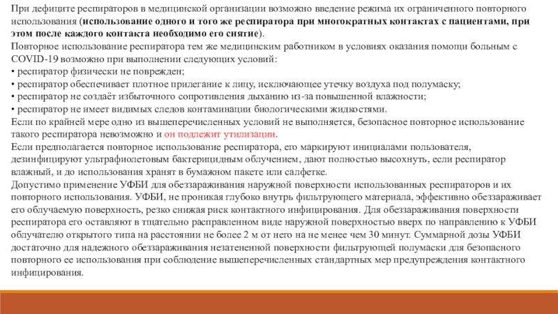 Слайд 16При дефиците респираторов в медицинской организации возможно введение режима их