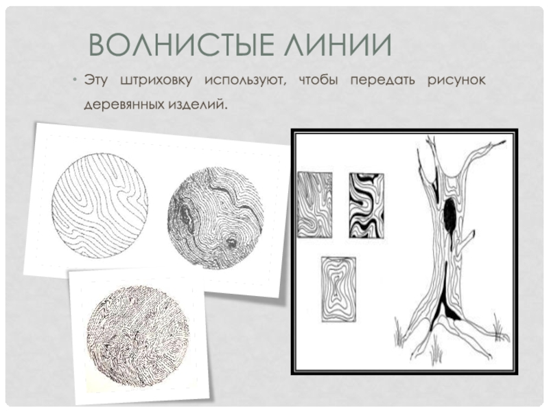 Эту штриховку используют, чтобы передать рисунок деревянных изделий.