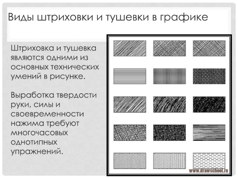 разные поверхности, изображаемого предмета. Такие штрихи тушью используют для многих