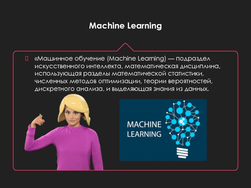 «Машинное обучение (Machine Learning) — подраздел искусственного интеллекта, математическая