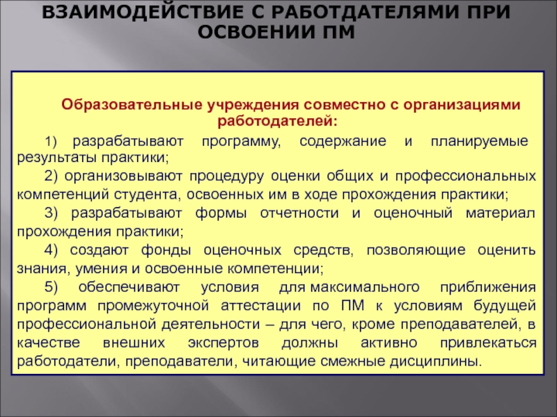 ВЗАИМОДЕЙСТВИЕ С РАБОТДАТЕЛЯМИ ПРИ ОСВОЕНИИ ПМ