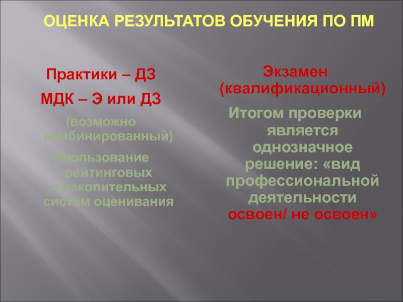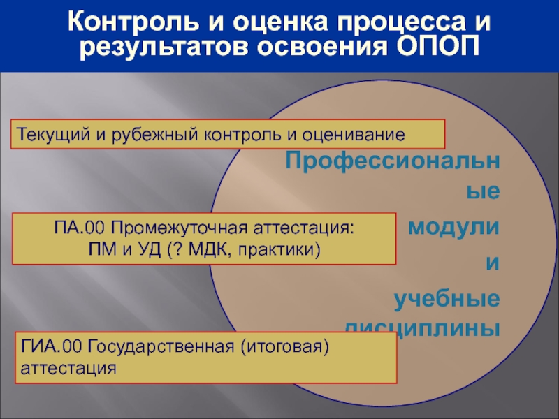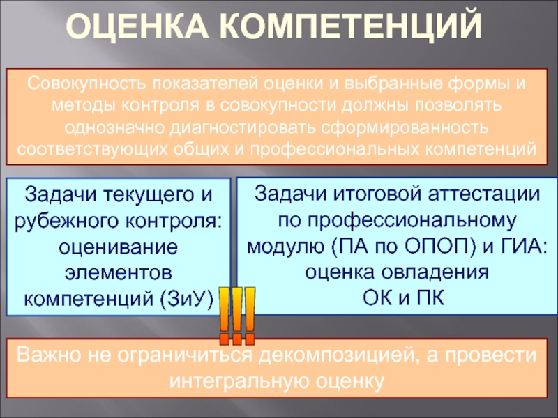 Совокупность показателей оценки и выбранные формы и методы контроля в совокупности должны позволять однозначно диагностировать сформированность соответствующих общих и профессиональных компетенций