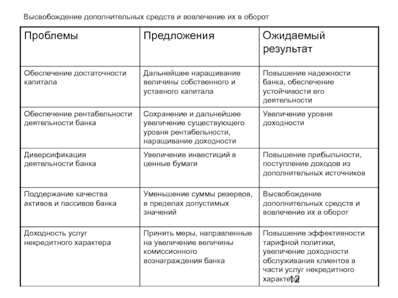 Слайд 12Высвобождение дополнительных средств и вовлечение их в оборот