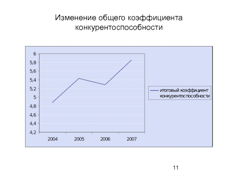 Слайд 11Изменение общего коэффициента конкурентоспособности