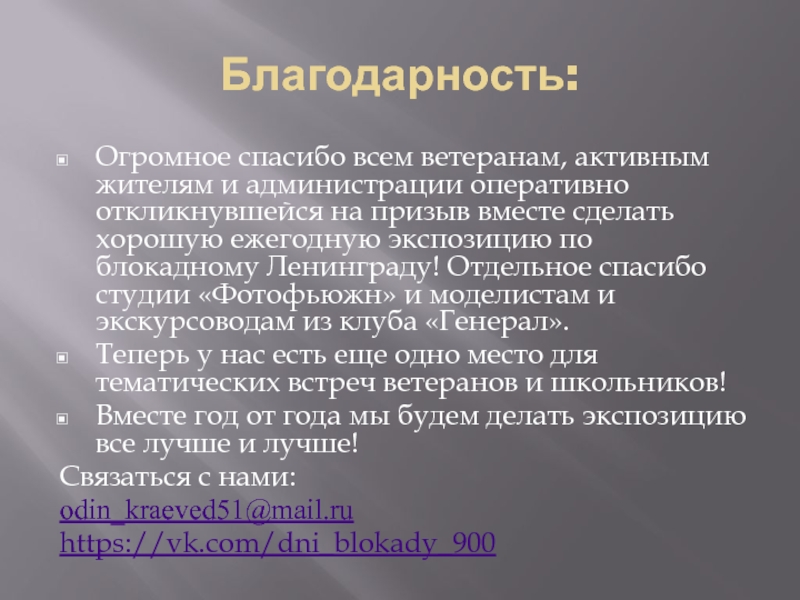 на призыв вместе сделать хорошую ежегодную экспозицию по блокадному Ленинграду!