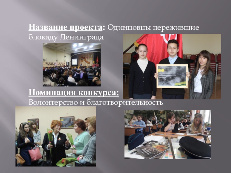 Номинация конкурса:Волонтерство и благотворительностьНазвание проекта: Одинцовцы пережившие блокаду Ленинграда