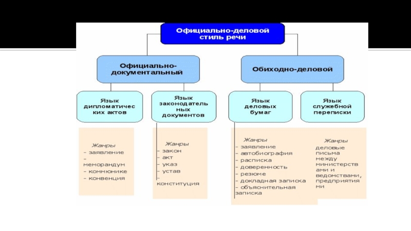 две разновидности: официально-документальный стиль и обиходно-деловой стиль