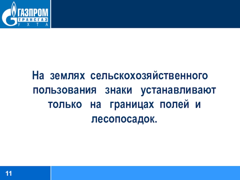 Слайд 11На землях сельскохозяйственного пользования знаки устанавливают только